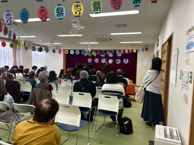 第16回「上池袋ひろばまつり」が開催されました。オープニングを飾ったのは「回遊音楽キャラバン」のバイオリンとピアノのコンサート。フランクフルト、チョコバナナ、ポップコーンなどの食べ物コーナーは、行列が出来るほどの大人気。ヨーヨー釣り、的あてなどの縁日ゲームのコーナー、新聞ゴマ、変わり絵パズルなどの手作り玩具のコーナー、CSWのガチャガチャも大賑わい。地域の人々と協力し合って開催し、楽しめるまつりとなりました。